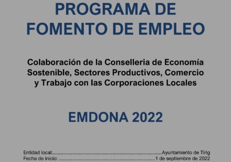 De l’1 de setembre de 2022 al 31 de maig de 2023, l’Ajuntament de Tírig dona treball a una dona amb el programa EMDONA 2022 de Labora. El contracte compta amb una…