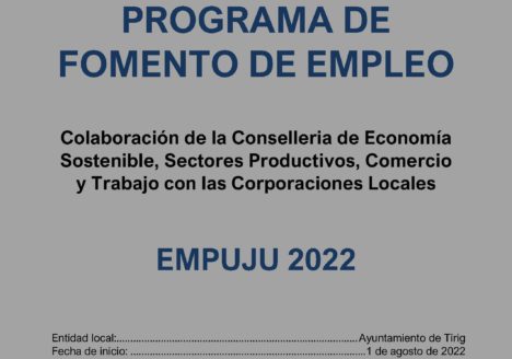 El passat 1 d’agost, un jove menor de 30 anys va entrar a formar part de la plantilla de l’Ajuntament de Tírig gràcies al programa d’ocupació *EMPUJU 2022 de Labora. El contracte…
