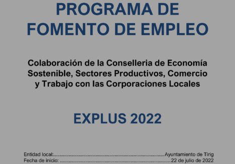 L’Ajuntament de Tírig va formalitzar el passat 22 de juliol la contractació d’una persona major de 30 anys dins del programa d’ocupació EXPLUS 2022 de Labora. El treballador estarà en el seu…