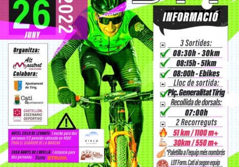 El pròxim 26 de juny se celebra a Tírig la primera edició de la Marxa BTT ‘Catírig’, per a la qual s’han preparat dos recorreguts diferents entre les muntanyes de l’Alt Maestrat.…