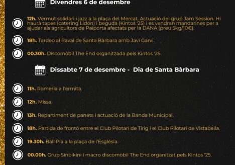 Vermut solidari, ‘tardeo’ i romeria marquen la programació de Tírig per al pont de desembre