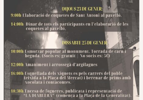 La festivitat de Sant Antoni en Tírig es celebrarà el cap de setmana del 27 i 28 de gener. En el municipi, la representació de La Diablera tornarà a captar tot el…