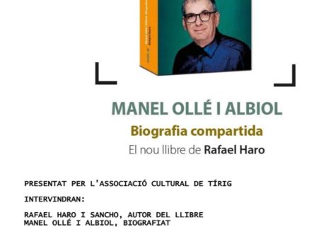 Dissabte que ve 29 d’octubre tindrà lloc a la Sala de Plens de Tírig la presentació de la biografia de Manel Ollé i Albiol. L’esdeveniment, que estarà presentat per l’Associació Cultural de…