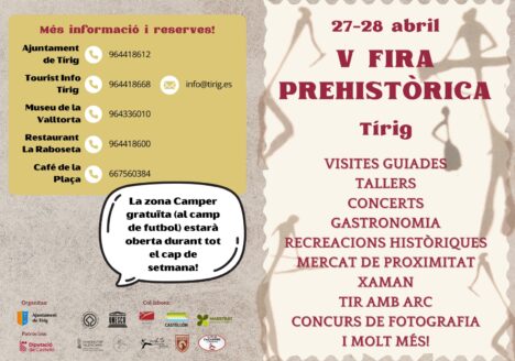 – La localitat tanca una programació per als dies 27 i 28 d’abril que inclou visites guiades, recreacions, tir amb arc, mercat i concerts, entre altres La V Fira prehistòrica de Tírig…